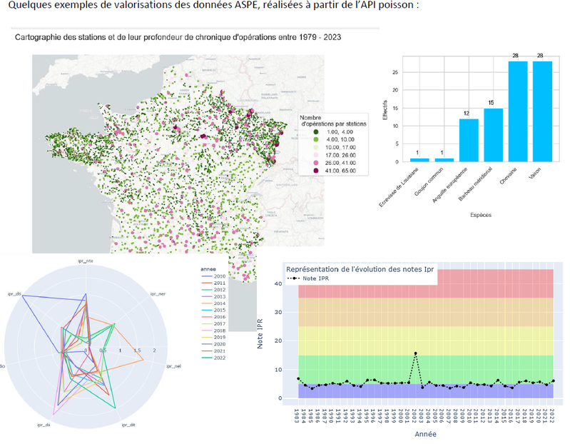 Pour connaitre le nombre de poissons par espèce, le Sandre a défini des stations de mesure, observées à partir de pêches électriques, représentant des opérations.