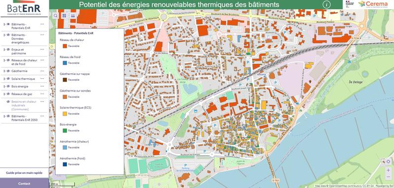 Avec le soutien de l’ADEME et de la DGEC, le Cerema mène le projet "BatEnR" consistant à caractériser, au niveau national mais à l'échelle de chaque bâtiment, le potentiel de développement des énergies renouvelables thermiques (EnR thermiques).