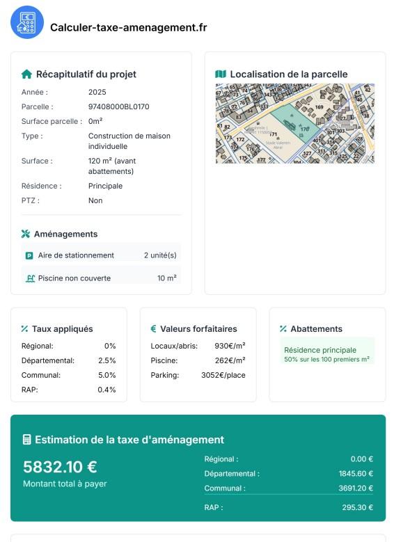 Une feuille cadastrale comporte des parcelles, qui peuvent supporter des bâtiments.
