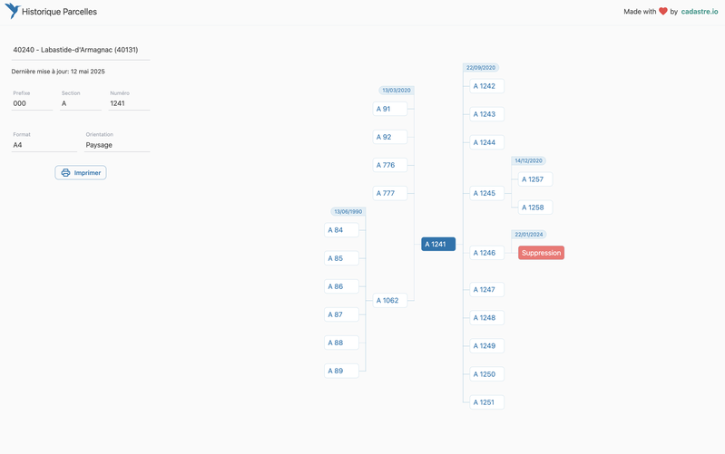 Les fichiers départementaux des documents de filiation informatisés (DFI) des parcelles permettent de consulter l'historique des parcelles cadastrales.