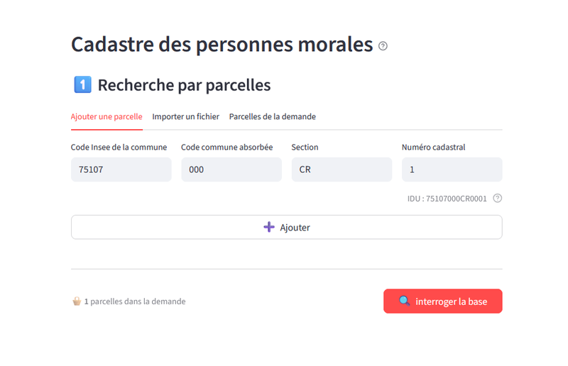 Les fichiers des propriétés non bâties (parcelles) restituent les références cadastrales, l'adresse, la contenance et la nature de culture des parcelles, complétées du code droit, de la dénomination et de la forme juridique des personnes morales propriétaires.