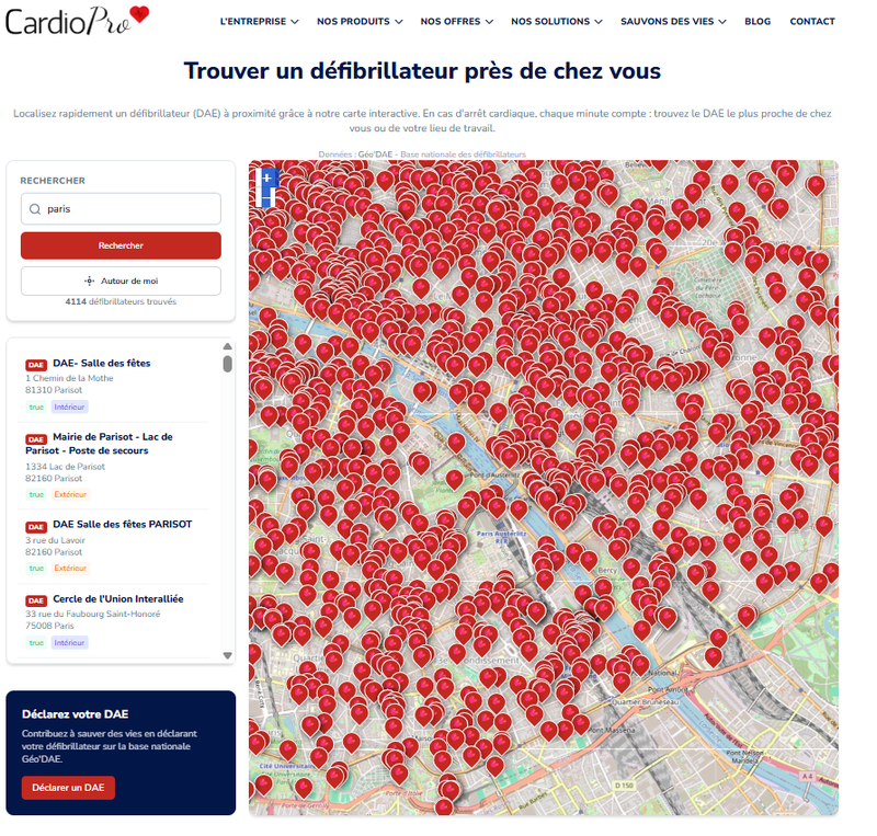 Géo'DAE est la base de données nationale des défibrillateurs automatisés externes (DAE), recensés en France.