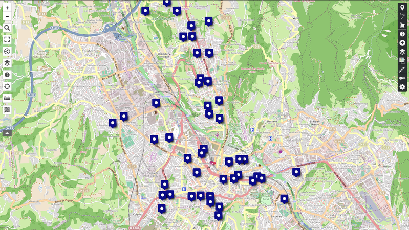 Carte des panneaux d'affichage public secteur Grand Chambéry