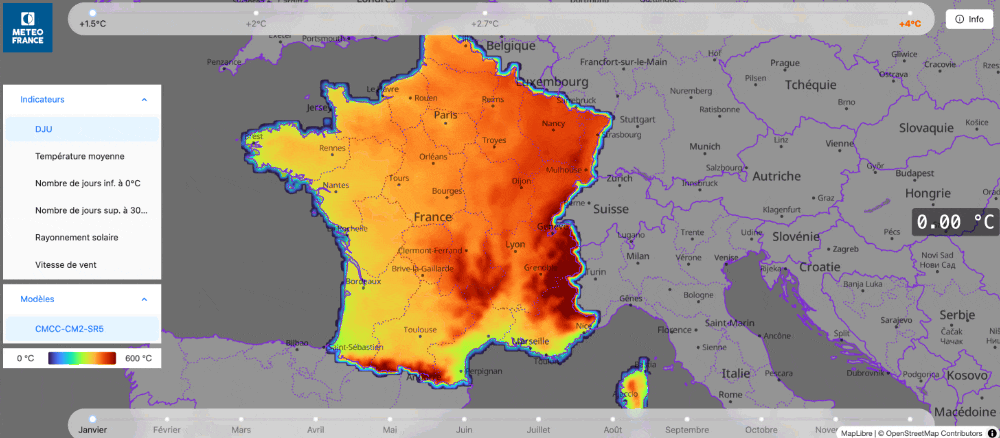 Météo France a produit une nouvelle génération de données de projections climatiques sur la France hexagonale et les Outre-mer, aux caractéristiques inédites, favorisant une meilleure connaissance du climat notamment à des fins d’adaptation (nouveaux domaines géographiques, résolutions spatiales fines, voir pour certaines pas de temps horaire, longues séries depuis 1850, larges ensembles de simulation émulés par IA, etc.).
