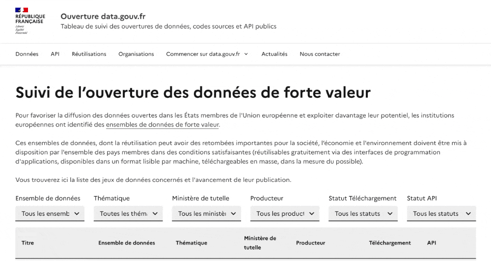 Si avant la réglementation européenne, beaucoup de jeux de données de forte valeur étaient déjà à la disposition du public, les ministères et producteurs de données se sont fortement mobilisés ces deux dernières années pour :
