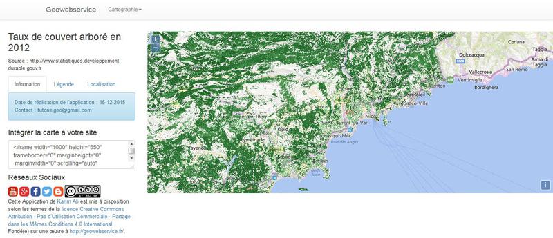Carte interactive du taux de couvert arboré en 2012 en France.