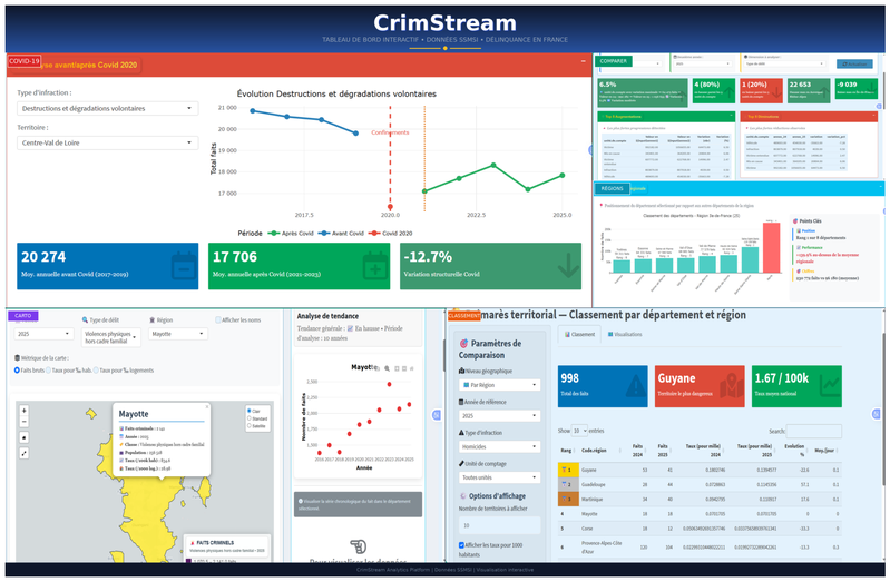 Crim'Stream — Observatoire territorial de la délinquance en France (2016-2025)