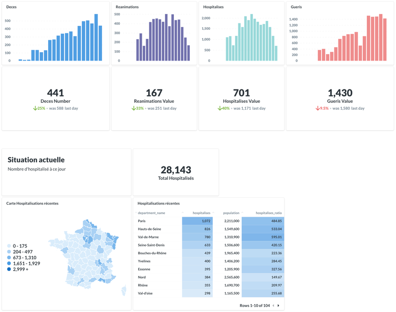 Simple dashboard pour suivre l'évolution du Covid par région / département