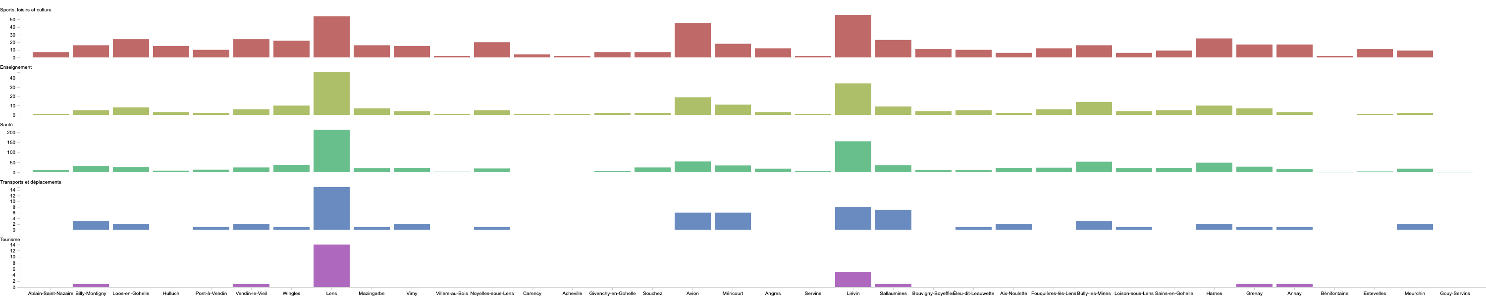 Datavisualisation du jeu de données sur les équipements de la Communauté d'agglomérations de Lens-Liévin.
