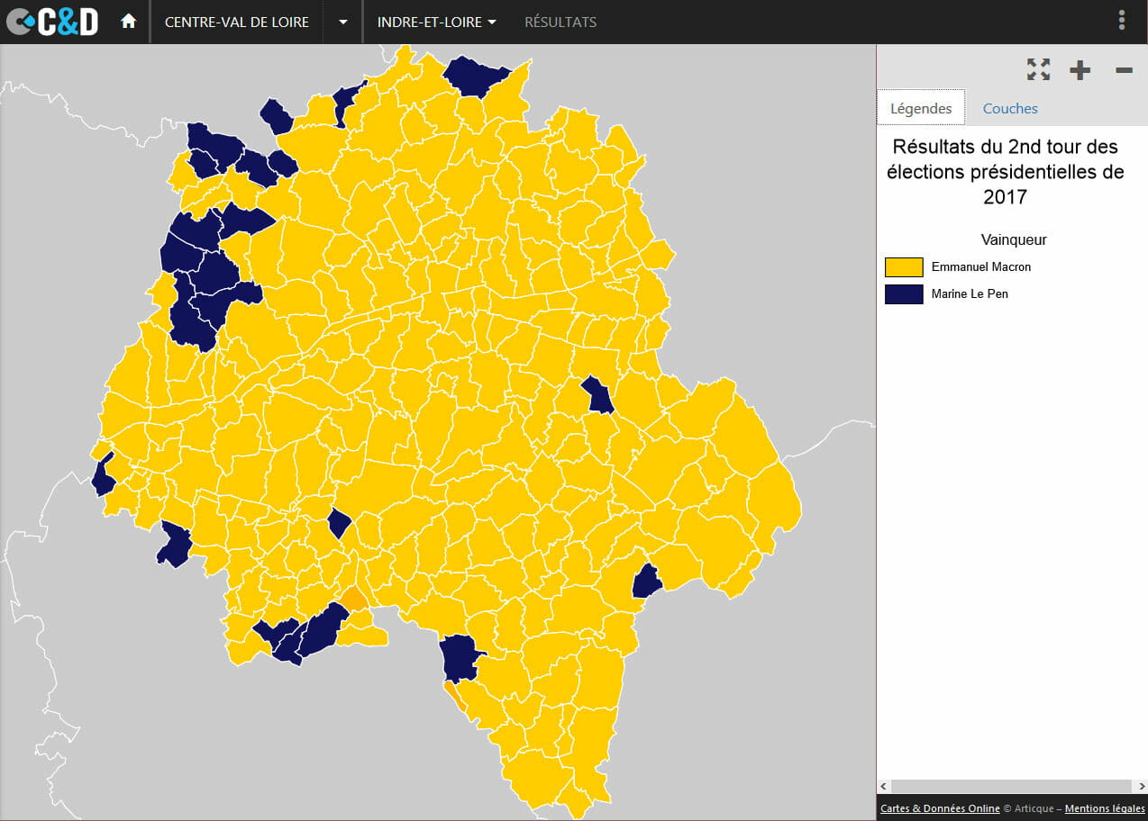 - Carte n°8 : candidat en tête des suffrages dans les communes d’Indre-et-Loire à l’issue du second tour - Cliquez ici pour agrandir cette carte