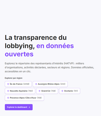 Explorez le répertoire des représentants d'intérêts (HATVP) : milliers d'organisations, activités déclarées, secteurs et régions. Données officielles, accessibles en un clic.