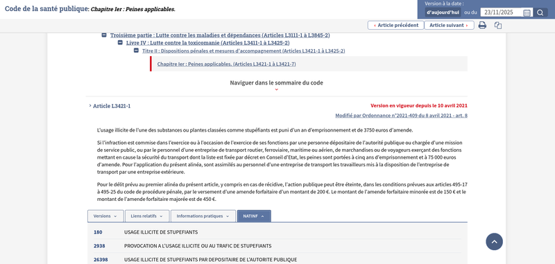L’application permet de rechercher une infraction par numéro NATINF, intitulé, article de loi, code, etc., et d’en consulter toutes les informations grâce à l’API de NATINFo.