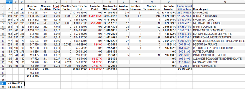 Calcul du financement public des partis politiques